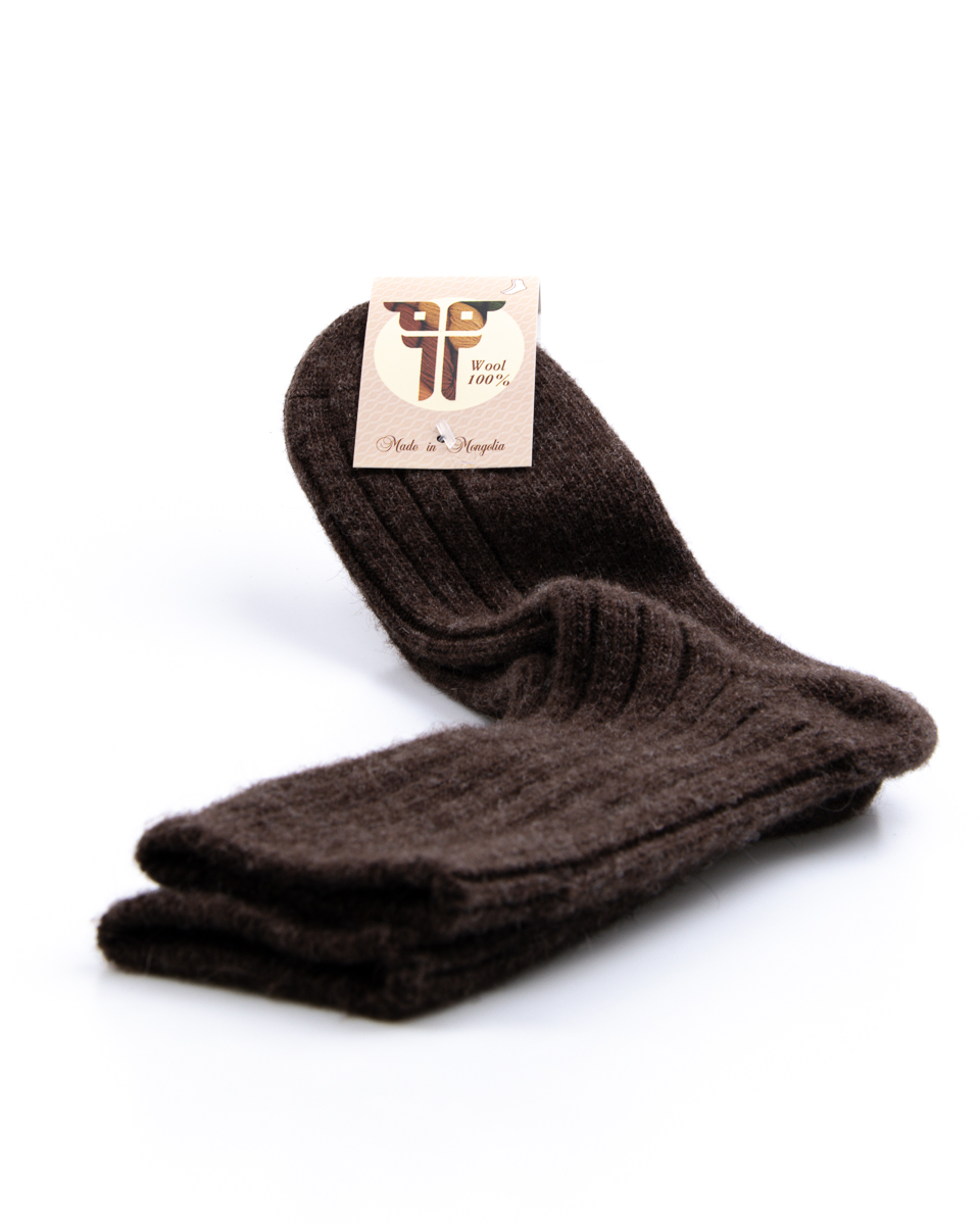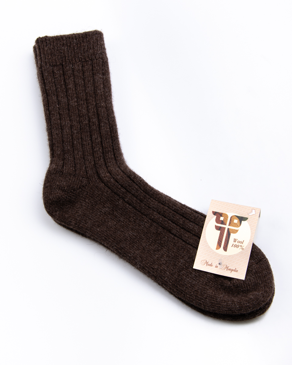 100% Schapenwol – Wollen sokken – Bruin – Ribbelpatroon
