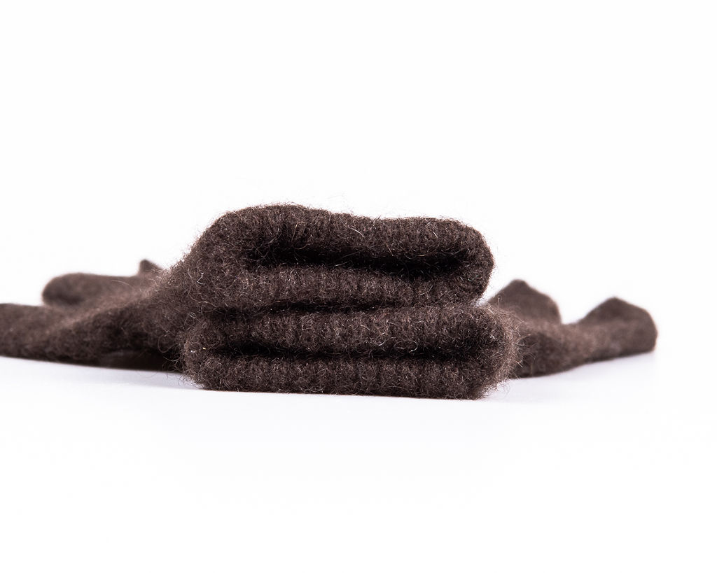 De handschoenen zijn gemaakt van de fijne, isolerende ondervacht van de Mongoolse jak (Sarlag). Deze rundersoort leeft in de ruige berggebieden van Centraal-Azië en trotseert daar extreme kou. Dankzij diezelfde eigenschappen biedt jakwol jou ultieme bescherming tegen lage temperaturen.