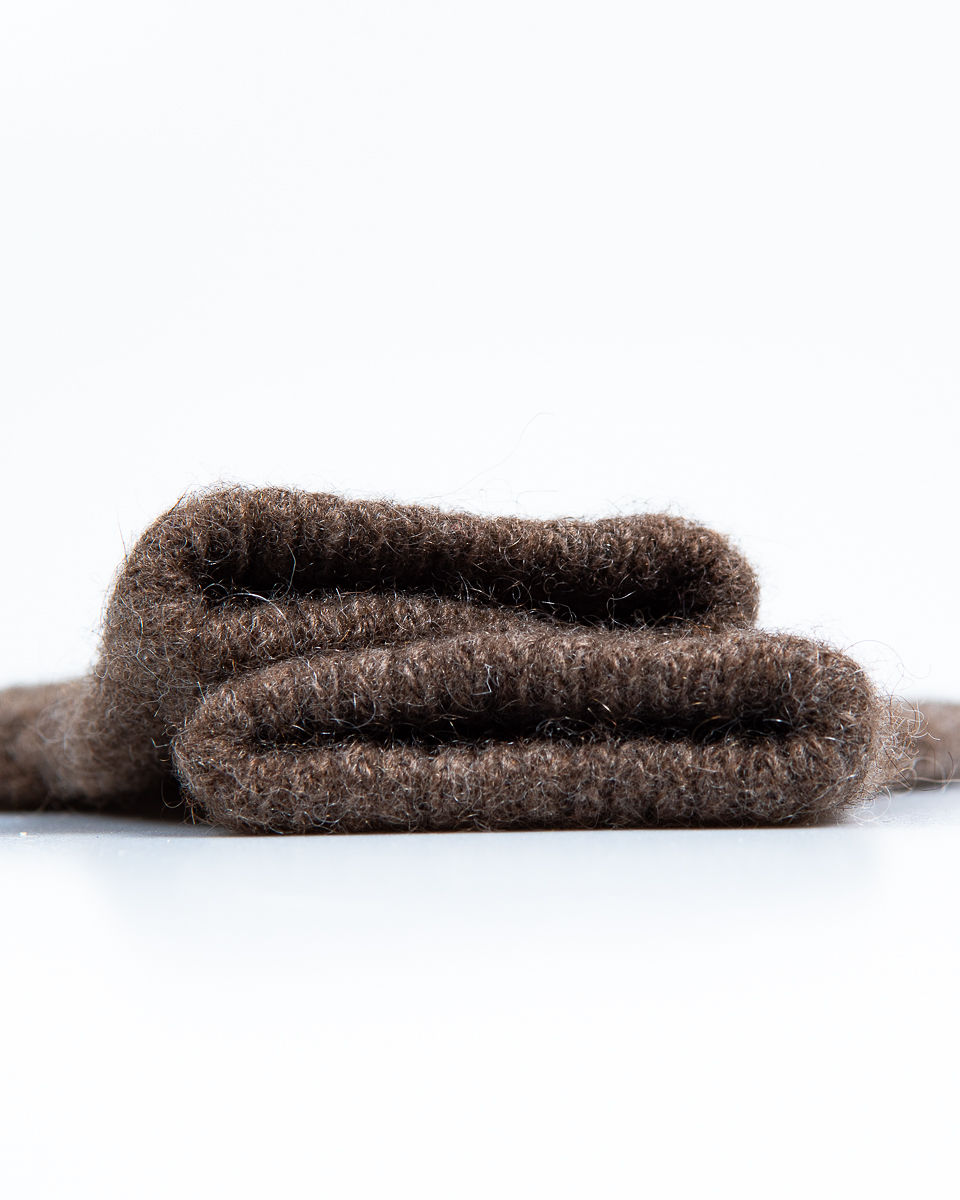 De handschoenen zijn gemaakt van de fijne, isolerende ondervacht van de Mongoolse jak (Sarlag). Deze rundersoort leeft in de ruige berggebieden van Centraal-Azië en trotseert daar extreme kou. Dankzij diezelfde eigenschappen biedt jakwol jou ultieme bescherming tegen lage temperaturen.